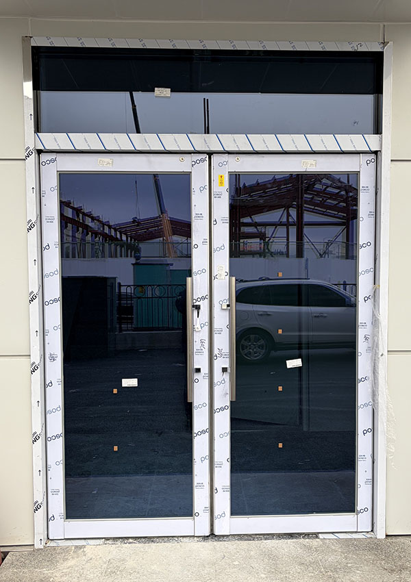 이번 김포 학운리 현장에서는 공장의 특성을 고려하여, 견고한 이중문(양개도어) 형태로 시공을 진행했습니다. 상단에는 채광창(후레임)까지 함께 설치하여 실내 조도를 확보하고, 출입문 개방감을 극대화했습니다.